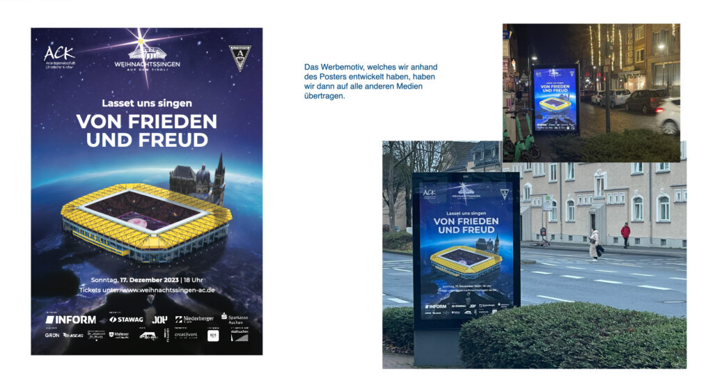 Die Kampagne entfaltete spürbare Wirkung: Über 50 Citylights in ganz Aachen machten das Weihnachtssingen sichtbar im Alltag der Menschen, präsent im Straßenraum, auf dem Weg zur Arbeit, zur Schule oder in die Innenstadt. Die emotionale Botschaft erreichte die Region nicht nur digital, sondern wurde zu einem gemeinschaftlichen Erlebnis im öffentlichen Raum.
